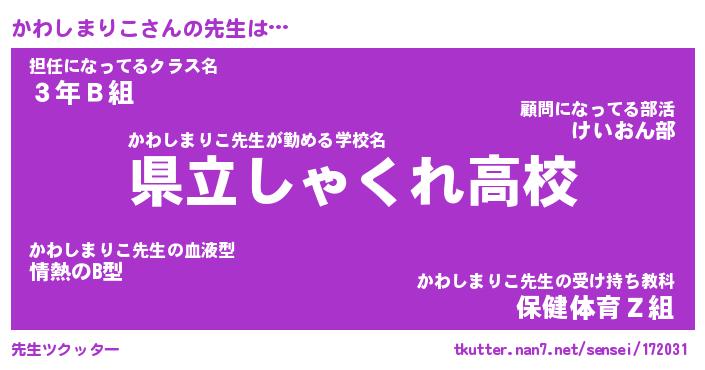| 肩書あだ名 | 『かわしまりこ御曹司』 |