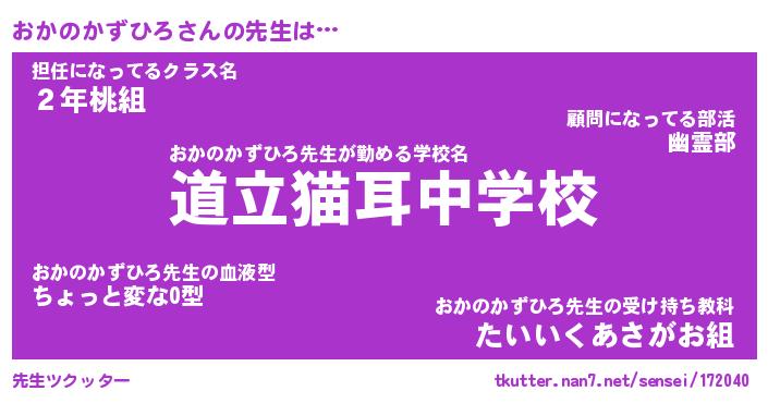 | ヘコむあだ名 | 『おかにー』『なまこ酢』『おかっぺ』 |