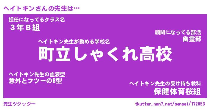 | ヒーロー風カッコイイあだ名 | 『スーパーヘイトキン』『天弓騎士ヘイ』 |