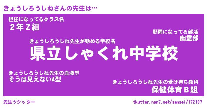 | 胡散臭い通販商品みたいなあだ名 | 『モテモテ間違いなし霊験あらたかなお札…その名も「きょうしろうしね」』 |