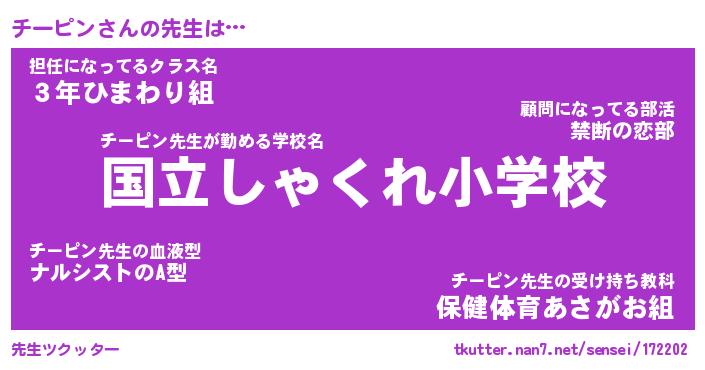 | ヒーロー風カッコイイあだ名 | 『スーパーチーピン』『天弓騎士チー』 |
