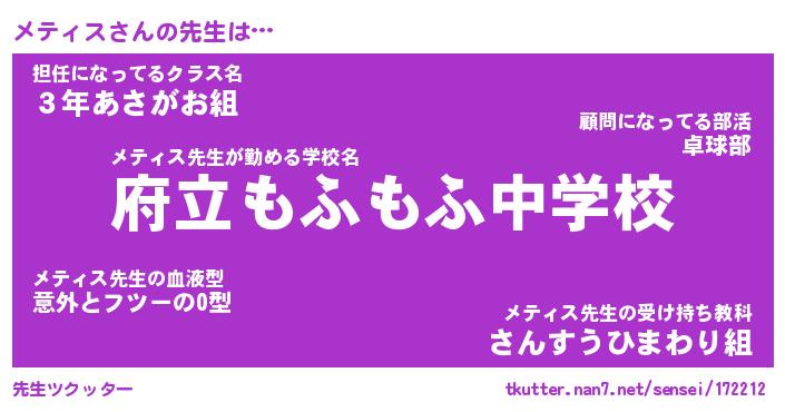 | 意味不明あだ名 | 『ペロリンメティス』『永久保存メティス』 |