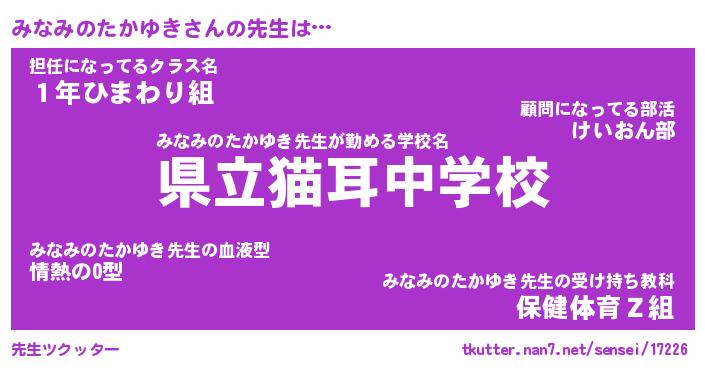 | 女子向けラノベタイトル風あだ名 | 『みなみのたかゆき姫と円卓の騎士』 |