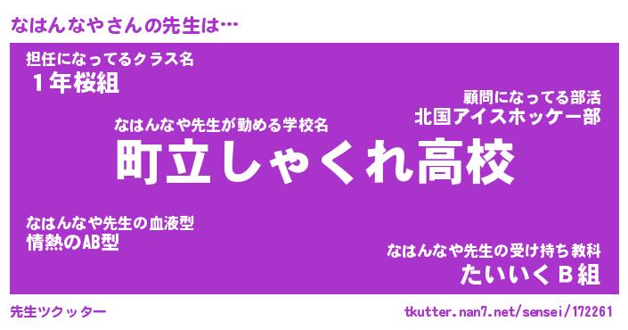 | 肩書あだ名 | 『なはんなや御曹司』『なはんなや副担任』 |