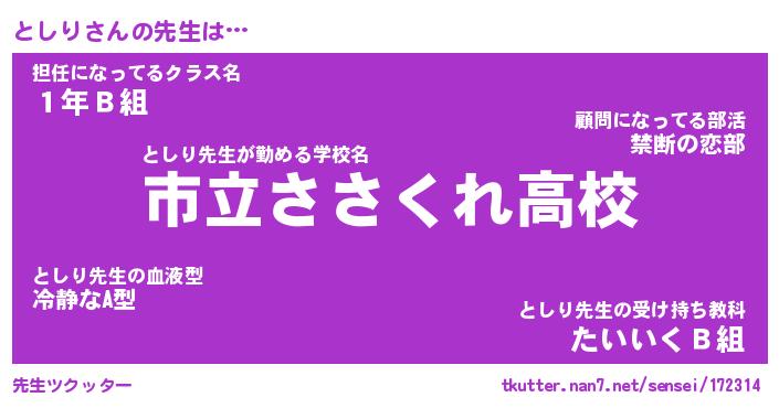| ファンタジー風あだ名 | 『トシフェル』『エターナルトシリー』 |