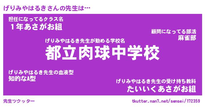 | ツイッター | げりみやはるきさんのツイッターID『masyumaro_star』 |