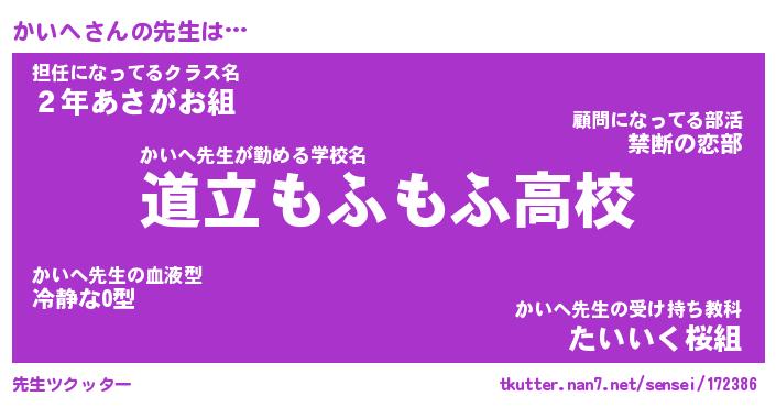 | 意味不明あだ名 | 『ペロリンかいへ』『かいへフォーエバー』 |