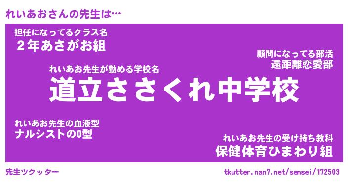 | 意味不明あだ名 | 『ペロリンれいあお』『永久保存れいあお』 |