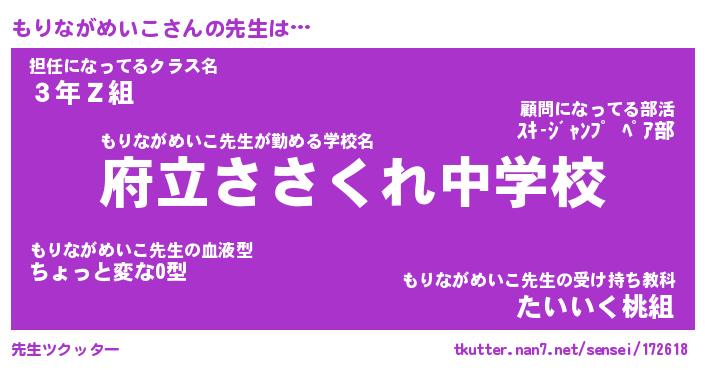 | ヘコむあだ名 | 『もりもー』『酢こんぶ』 |