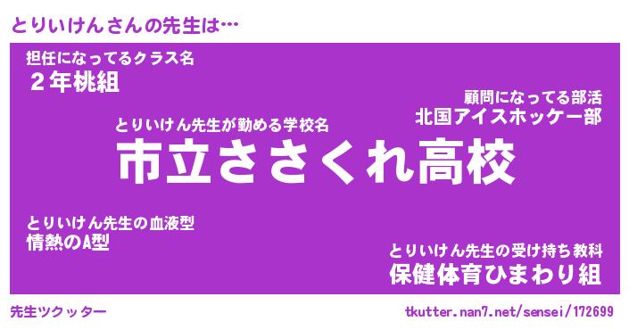 | ファンタジー風あだ名 | 『トリフェル』『エターナルトリイケンー』 |