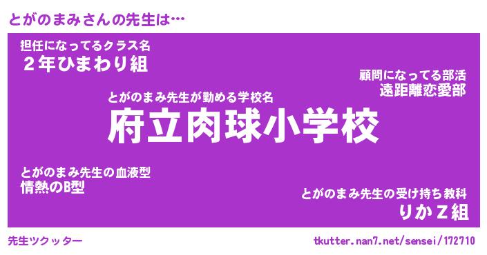 | ヘコむあだ名 | 『とがふぇ~』『なまこ酢』『とがを』 |