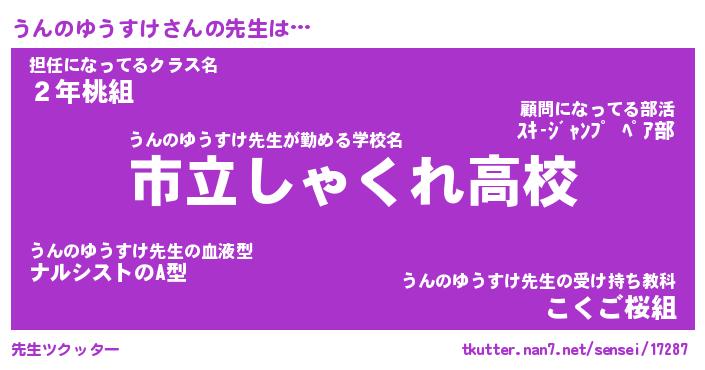 | 伝説のあだ名 | 『伝説のスナイパーうんのゆうすけ』 |