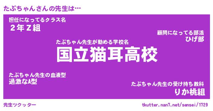 | ヘコむあだ名 | 『たぷにー』『なまこ酢』『たぷを』 |