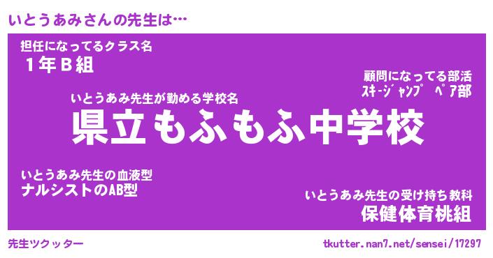 | ヘコむあだ名 | 『いとにゅー』『つくし』『いとお』 |
