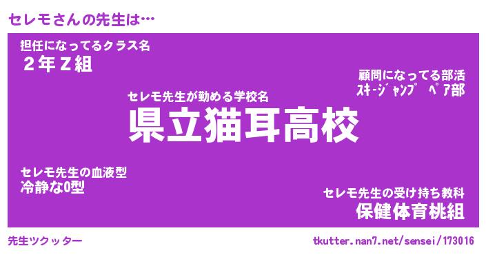 | ピコ太郎風あだ名 | 『セコ三郎』『ピセ十郎』『セレ十郎』 |