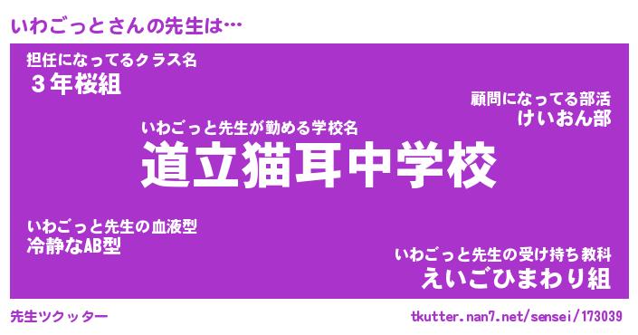 | ファンタジー風あだ名 | 『イワフェル』『エターナルイワゴットー』 |