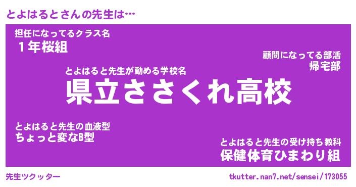 | ヘコむあだ名 | 『とよもー』『つくし』『とよっ子』 |