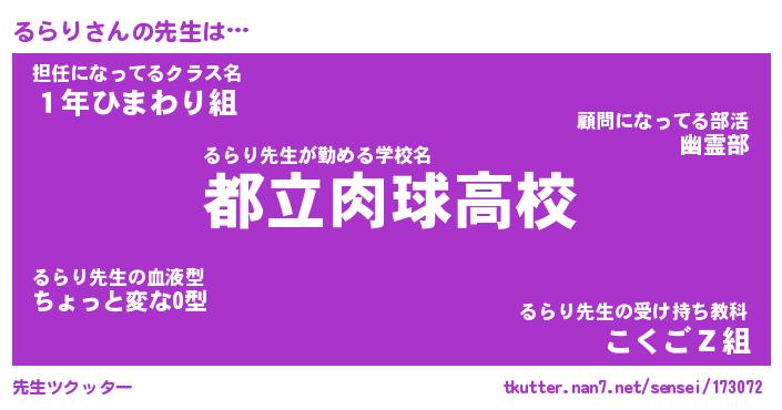 | ファンタジー風あだ名 | 『ルラフェル』『エターナルルラリー』 |
