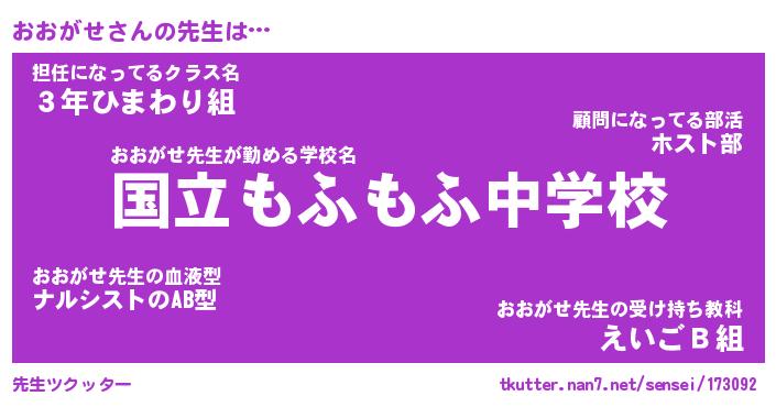 | 欧米人風あだ名 | 『マイケルおおがせ』『ウサインおおがせ』 |