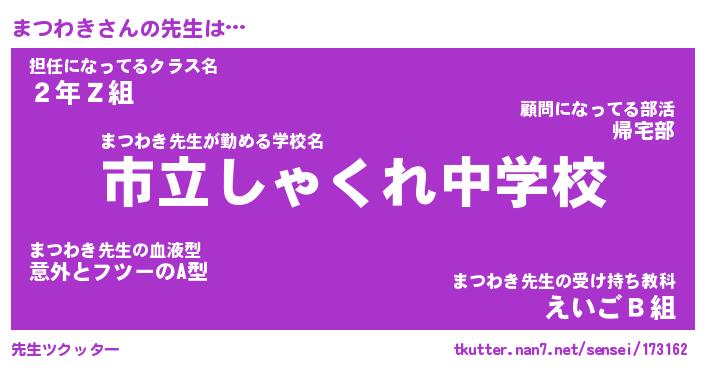 | ヒーロー風カッコイイあだ名 | 『スーパーマツワキ』『銀牙騎士マツ』 |