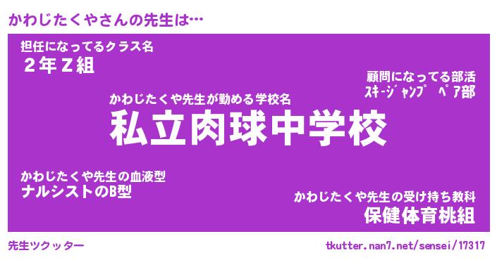 | 意味不明あだ名 | 『ペロリンかわじたくや』 |