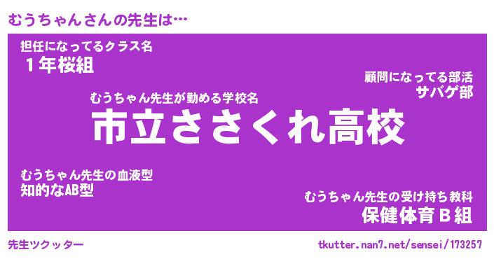 | 伝説のあだ名 | 『伝説のスナイパーむうちゃん』 |