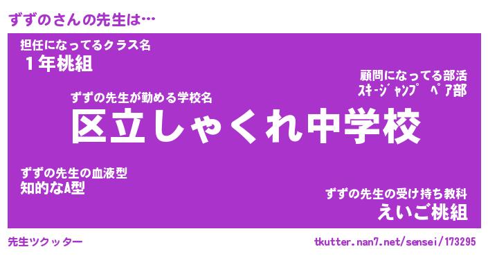 | ヒーロー風カッコイイあだ名 | 『スーパーズズノ』『ウルトラずずのマン』 |