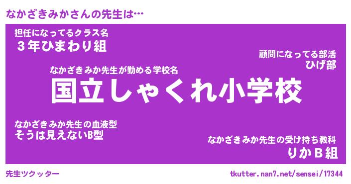 | 伝説のあだ名 | 『伝説のスナイパーなかざきみか』 |