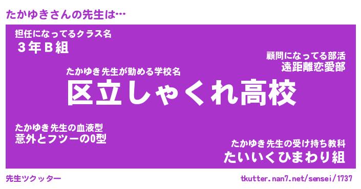 | 意味不明あだ名 | 『ペロリンたかゆき』『永久保存たかゆき』 |