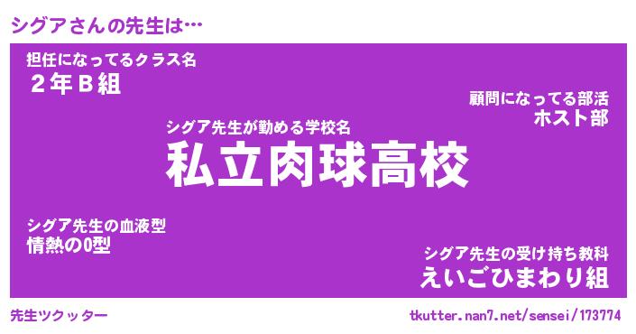 | ヘコむあだ名 | 『シグふぇ~』『なまこ酢』 |