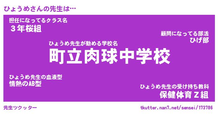 | ヒーロー風カッコイイあだ名 | 『スーパーヒョウメ』『天弓騎士ヒョ』 |