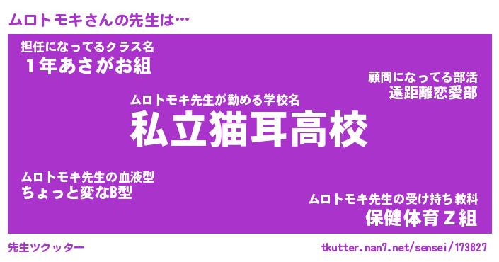 | ポケモン風あだ名 | 『ムロチュウ』『ムロトダネ』 |