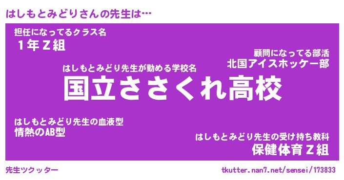 | 伝説のあだ名 | 『伝説のスナイパーはしもとみどり』 |