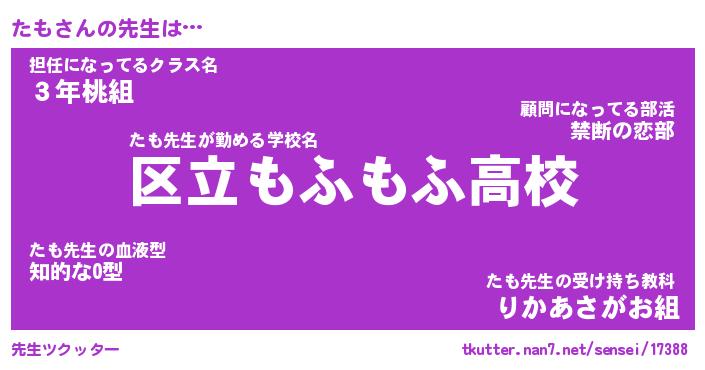 | ヘコむあだ名 | 『たもにゅー』『レバニラ』 |