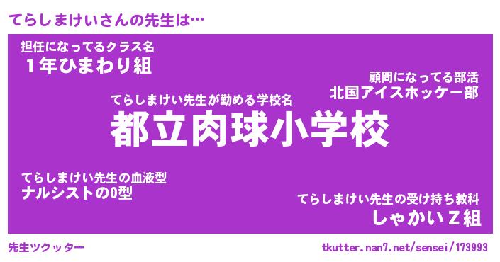 | ツイッター | てらしまけいさんのツイッターID『katatsumuri_star』 |