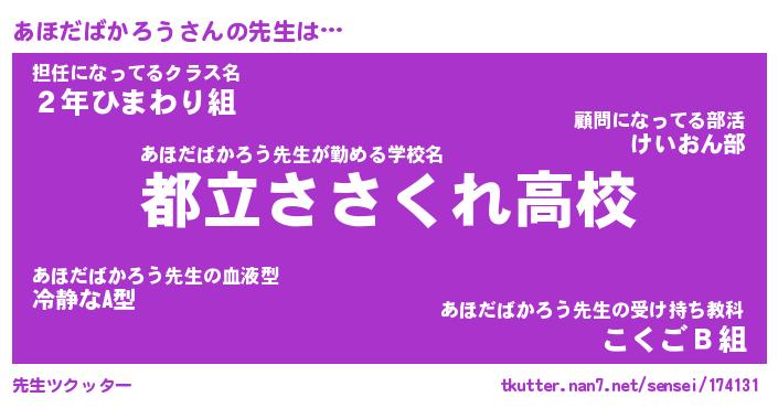 | ポケモン風あだ名 | 『アホチュウ』『アホダダネ』 |