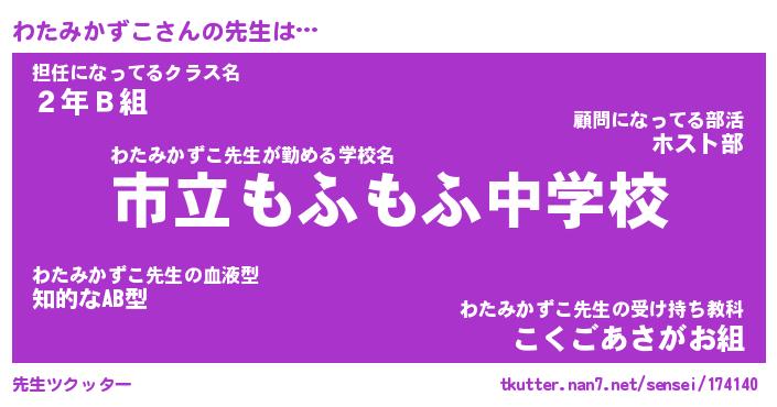 | ヘコむあだ名 | 『わたにゅー』『なまこ酢』 |
