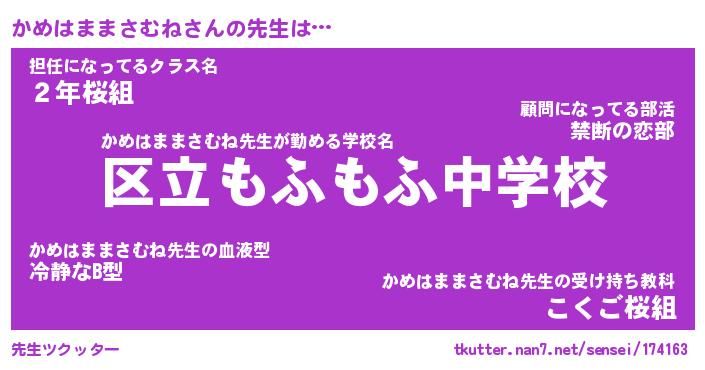 | 意味不明あだ名 | 『ペロリンかめはままさむね』 |