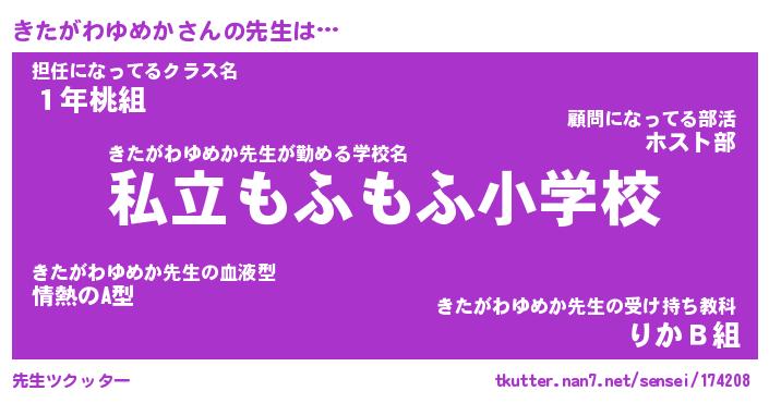 | 恥ずかしいあだ名 | 『プリティーきたがわゆめか』『きたちん』 |