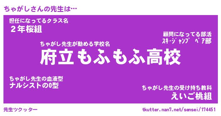| 意味不明あだ名 | 『ペロリンちゃがし』『永久保存ちゃがし』 |