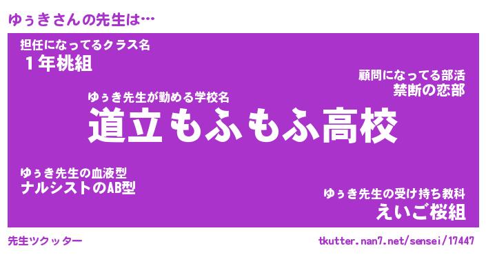 | ファンタジー風あだ名 | 『ユゥフェル』『エターナルユゥキー』 |
