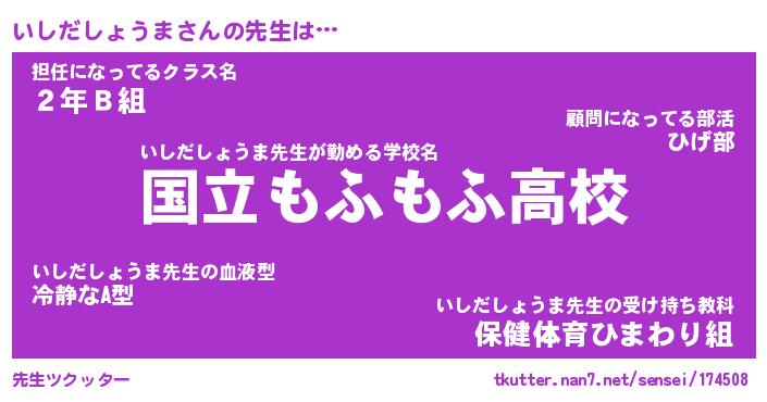 | 意味不明あだ名 | 『ペロリンいしだしょうま』 |