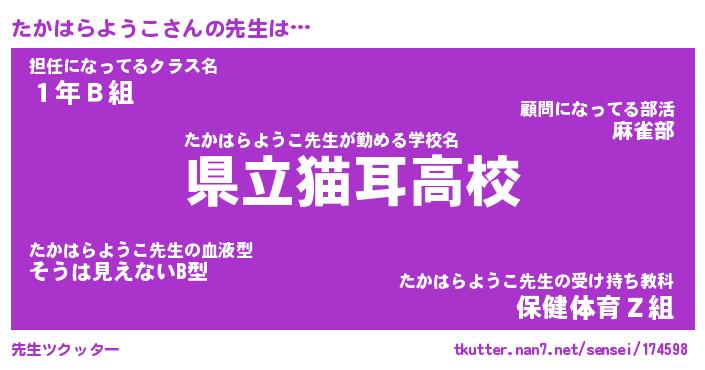 | 伝説のあだ名 | 『不死鳥の竜騎士たかはらようこ』 |