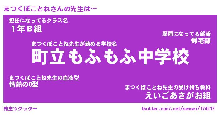 | ヘコむあだ名 | 『まつにゅー』『つくし』 |