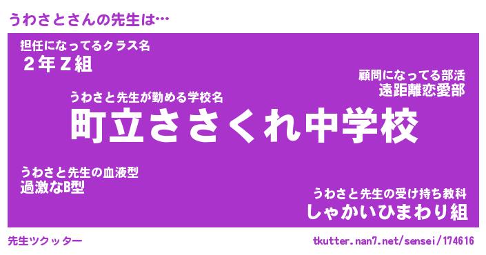 | ポケモン風あだ名 | 『ウワチュウ』『ウワサダネ』 |