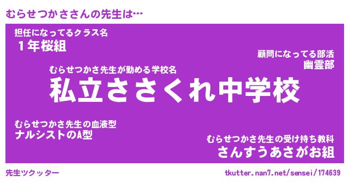 | ヒーロー風カッコイイあだ名 | 『スーパームラセツカサ』『銀牙騎士ムラ』 |