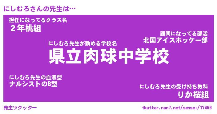 | 意味不明あだ名 | 『ペロリンにしむろ』『永久保存にしむろ』 |