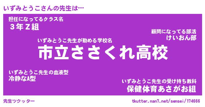 | 伝説のあだ名 | 『伝説のスナイパーいずみとうこ』 |