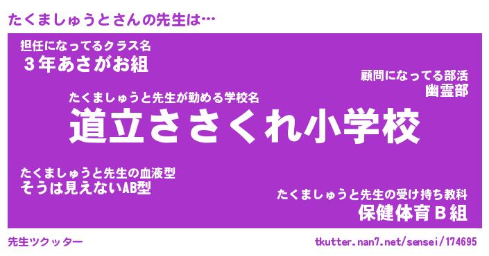 | 恥ずかしいあだ名 | 『プリティーたくましゅうと』『たくちん』 |