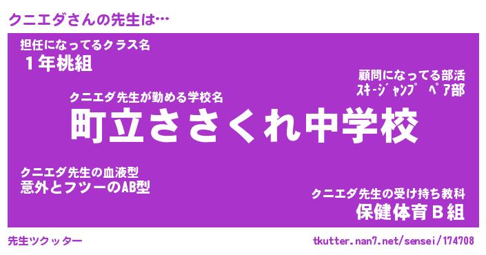 | 意味不明あだ名 | 『ペロリンクニエダ』『永久保存クニエダ』 |